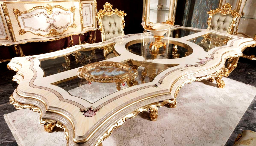 Elevate your dining experience with our exquisite Antique Solid Wood Luxury Cenevre Dining Room Set. Crafted with timeless charm and superior craftsmanship, this set adds a touch of vintage opulence to your space. Indulge in the allure of rich, solid wood and embrace luxury at its finest. Perfect for creating unforgettable dining moments and lasting memories. Discover the elegance of Cenevre today!