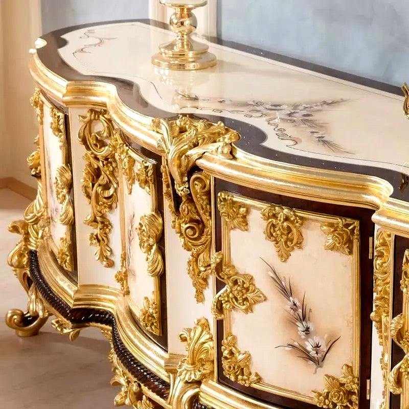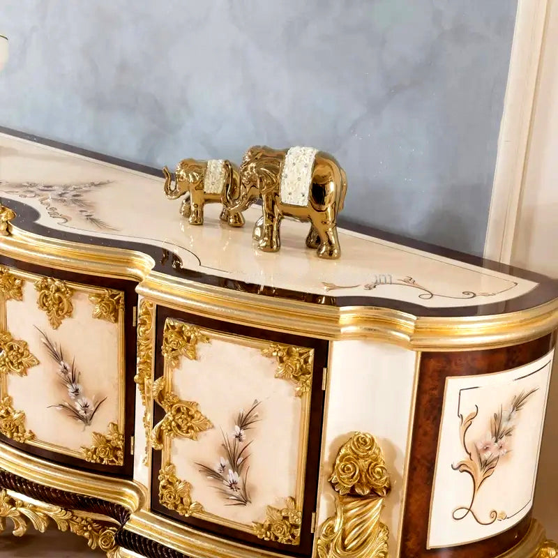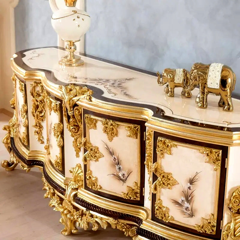 Introducing our exquisite Royal Hand-Carved TV Cabinet, a true embodiment of luxury and craftsmanship. Meticulously crafted by skilled artisans, this stunning piece combines timeless elegance with modern functionality, elevating your living space to regal heights.