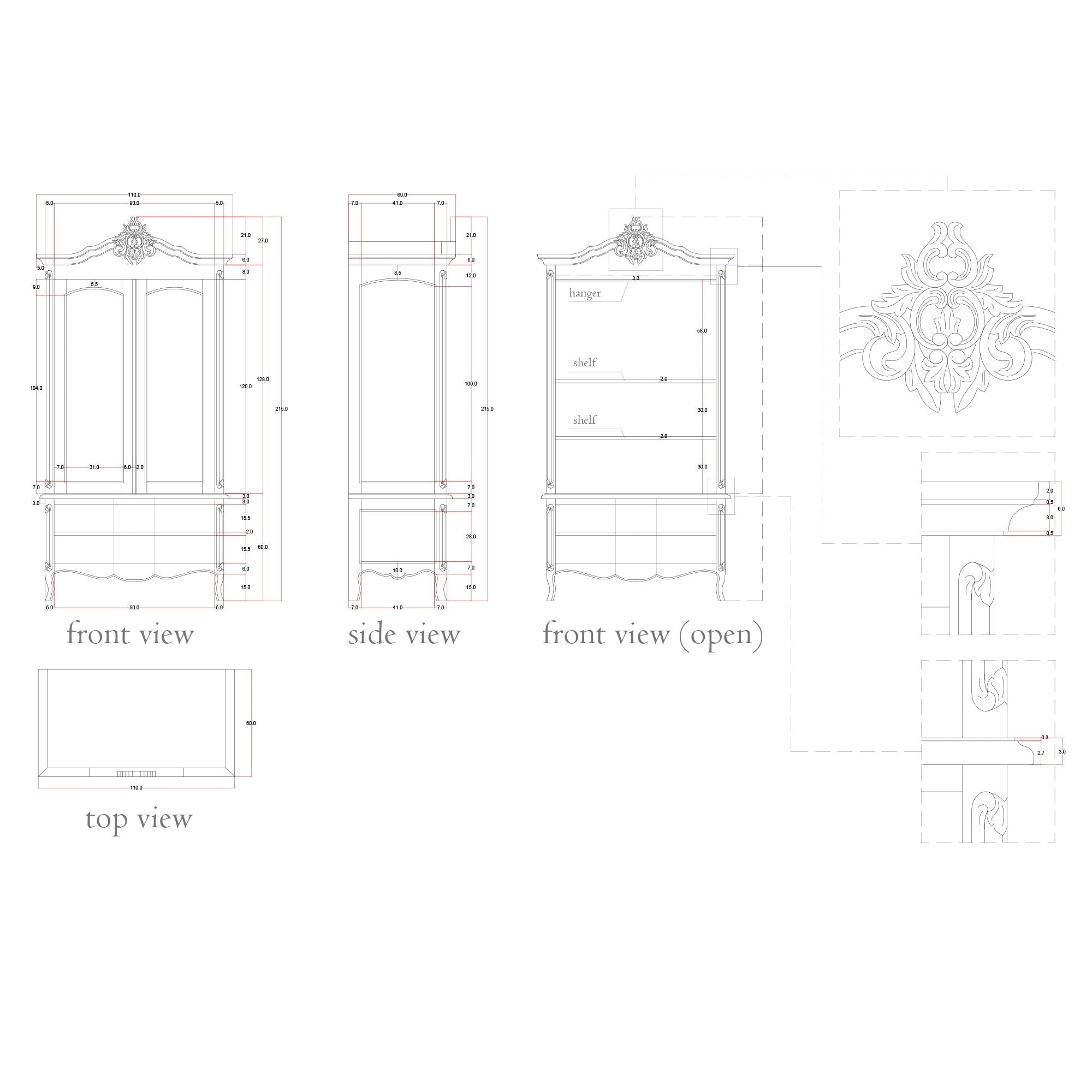 The Silver Hand Carving Wardrobe is an exquisite piece of furniture that seamlessly blends elegance and functionality. Crafted with meticulous attention to detail, this wardrobe features intricate hand-carved silver accents that adorn its sturdy wooden frame. The silver carvings, delicately etched with ornate patterns and motifs, create a captivating visual appeal, making it a focal point in any room. With ample storage space, including spacious drawers and adjustable shelves, the wardrobe offers practicality alongside its stunning aesthetics. The Silver Hand Carving Wardrobe is a testament to fine craftsmanship and timeless beauty, making it a cherished addition to any discerning homeowner's collection.
