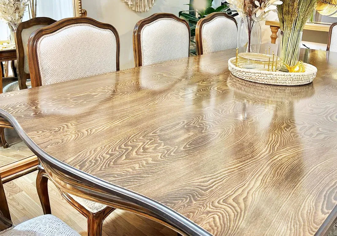 Elevate your dining experience with our exquisite Classical and Wooden Dining Table and Chairs set. Crafted with precision and love, this handmade masterpiece brings timeless elegance to your home. The rich, natural wood grain is a testament to quality and durability, ensuring that your dining set will be a cherished addition to your family for years to come. The classical design evokes a sense of nostalgia, making every meal a special occasion. Discover the perfect blend of style and functionality, all while enhancing your interior decor. Invest in this stunning dining table and chairs set, and let your home become a hub of warmth, comfort, and beauty.