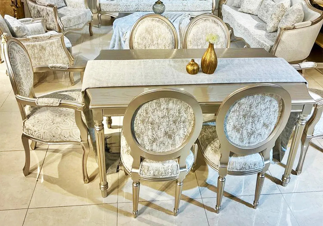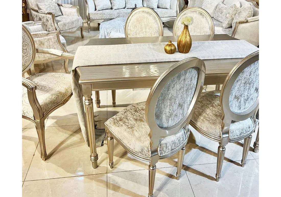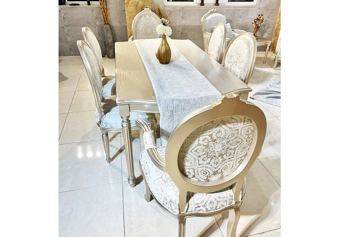 Introducing our exquisite "Classical Style Wooden Hand Carved Dining Table Set" - a true masterpiece for your dining room. Crafted with precision and adorned with intricate hand carvings, this set exudes timeless elegance and charm. The rich, natural wood finish adds warmth and character to your space. Whether you're hosting a lavish dinner party or enjoying an intimate family meal, this dining table set creates an inviting atmosphere that is sure to impress your guests. Elevate your dining experience with this classic beauty, a perfect blend of artistry and functionality. Explore our collection today and bring the essence of classical style into your home with this remarkable dining table set.