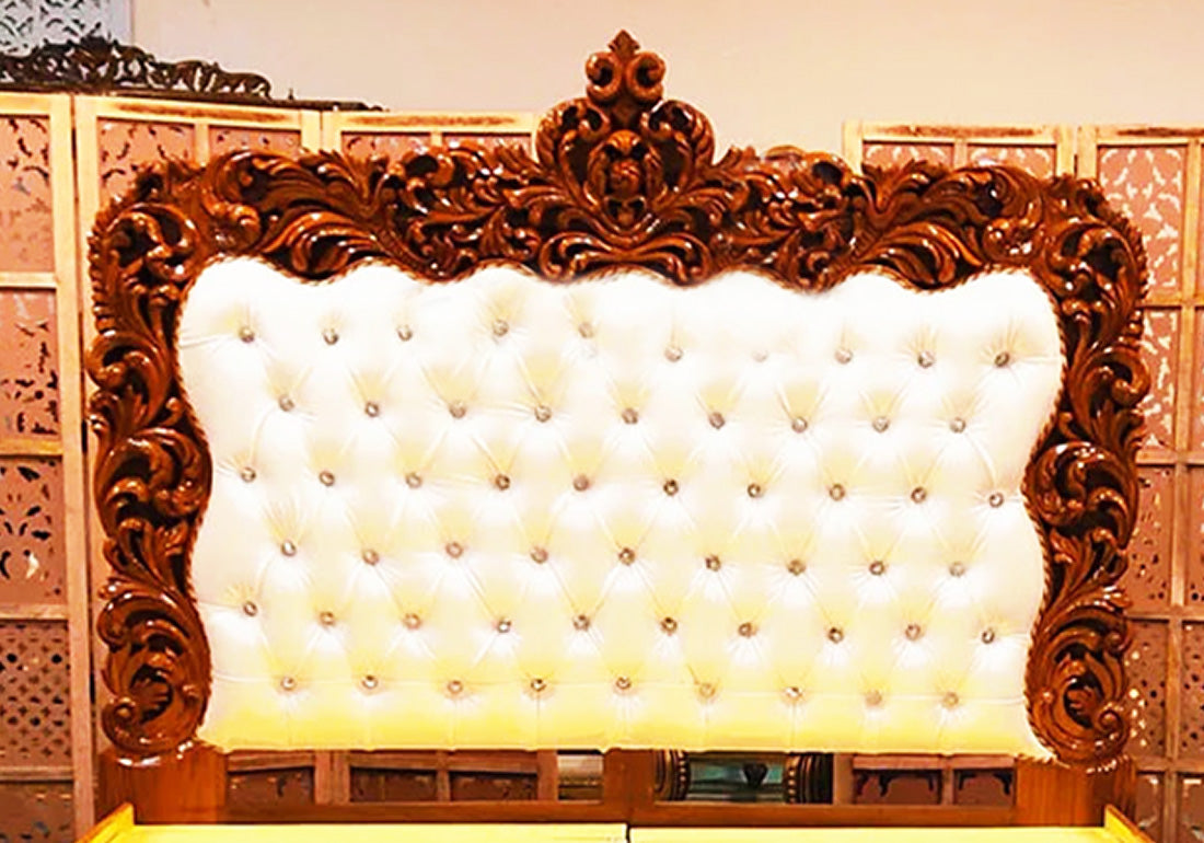 The "Elite Teak Wooden Hand Crafted Bed" represents the epitome of elegance and artistry in bedroom furnishings. Meticulously handcrafted from the finest teak wood, renowned for its durability and captivating grain patterns, this bed encapsulates the essence of timeless beauty and masterful craftsmanship. Its intricate detailing, carved patterns, and smooth finish stand as a testament to the skill of the artisans who bring this masterpiece to life.