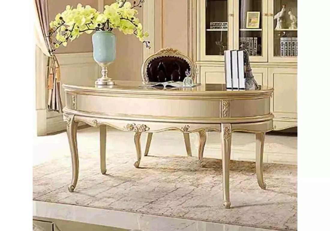 This office table is more than just a workspace; it's a statement of refined artistry and practicality. The teak wood's durability ensures that it's a long-lasting investment, resistant to the rigors of daily use. The generous surface area provides ample space for productivity, while the handcrafted details on the table's surface and legs add a touch of elegance and individuality.