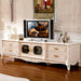 The cabinet's soothing cream hue exudes a sense of tranquility, effortlessly complementing any interior décor. Its generous size provides ample storage space, with multiple shelves and compartments thoughtfully designed to accommodate your multimedia essentials, such as your TV, sound system, gaming consoles, and more.