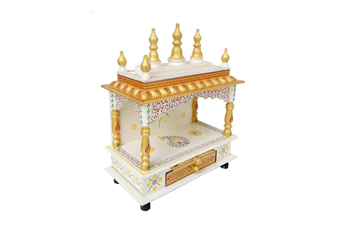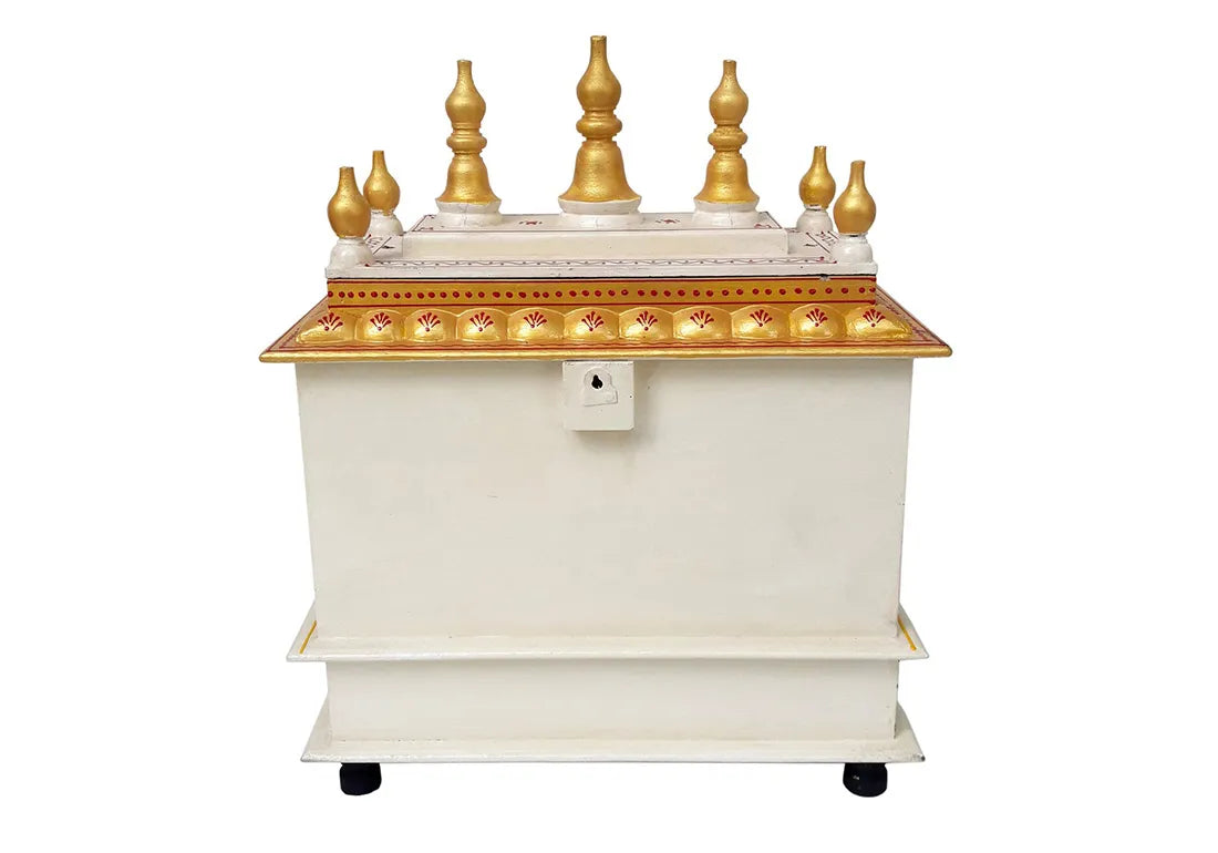 The temple's design is a testament to exquisite craftsmanship, featuring intricate carvings and motifs that are adorned with lavish gold accents. These details not only elevate the aesthetic appeal of the temple but also symbolize the divine and spiritual significance of the space. The white finish provides a sense of purity and serenity, creating a tranquil environment for your prayers and meditation.
