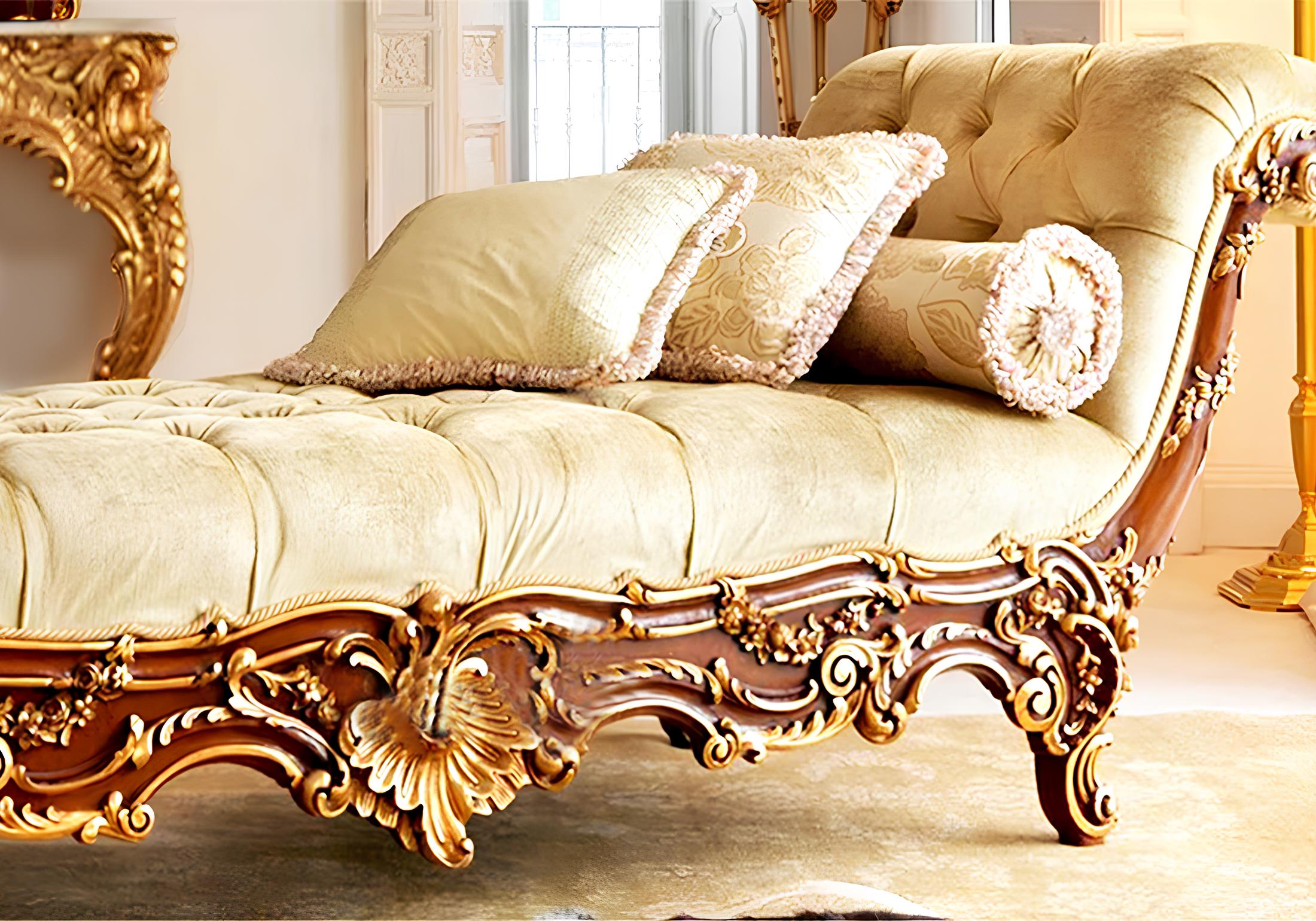 Experience the epitome of elegance with our exquisite Luxury and Royal Handcrafted Chaise Lounge. Indulge in opulence as you recline in style on this meticulously crafted masterpiece. Designed with intricate detailing and made from the finest materials, this chaise Lounge adds a touch of regal charm to any space. Elevate your interior with this statement piece that seamlessly combines luxury and craftsmanship. Discover comfort and sophistication like never before with our handcrafted chaise longue – a true symbol of refined living.