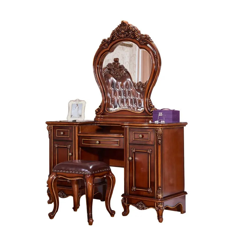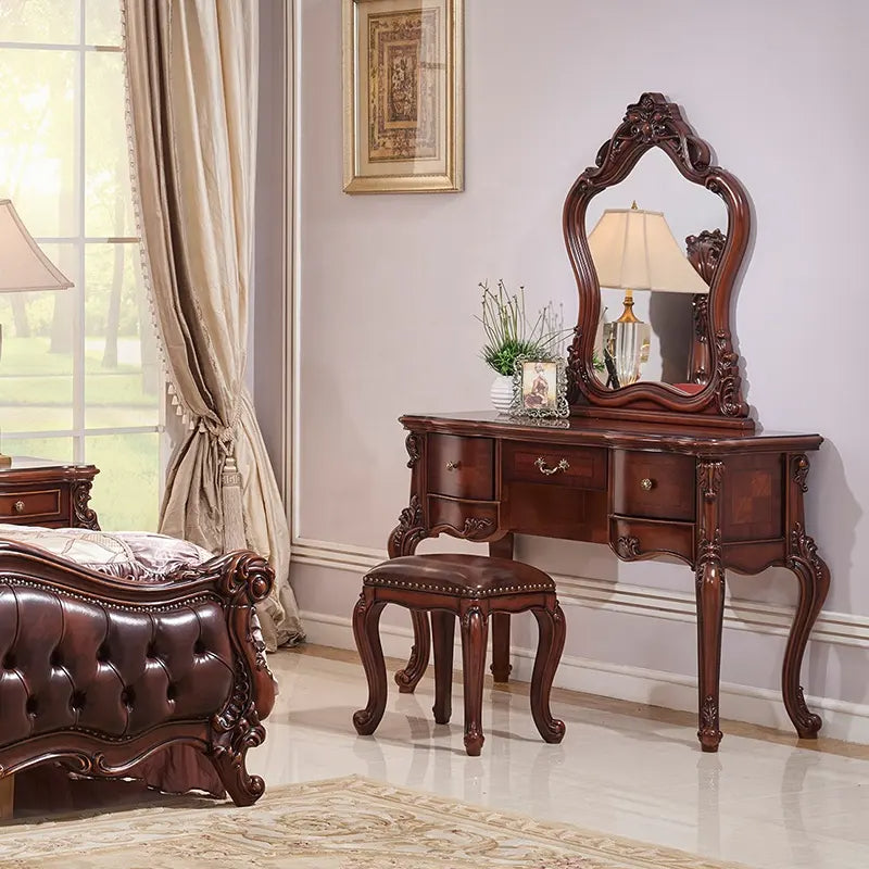The Brown European Style hand carving dressing table is the epitome of luxury and refinement, a captivating addition to any discerning individual's living space.