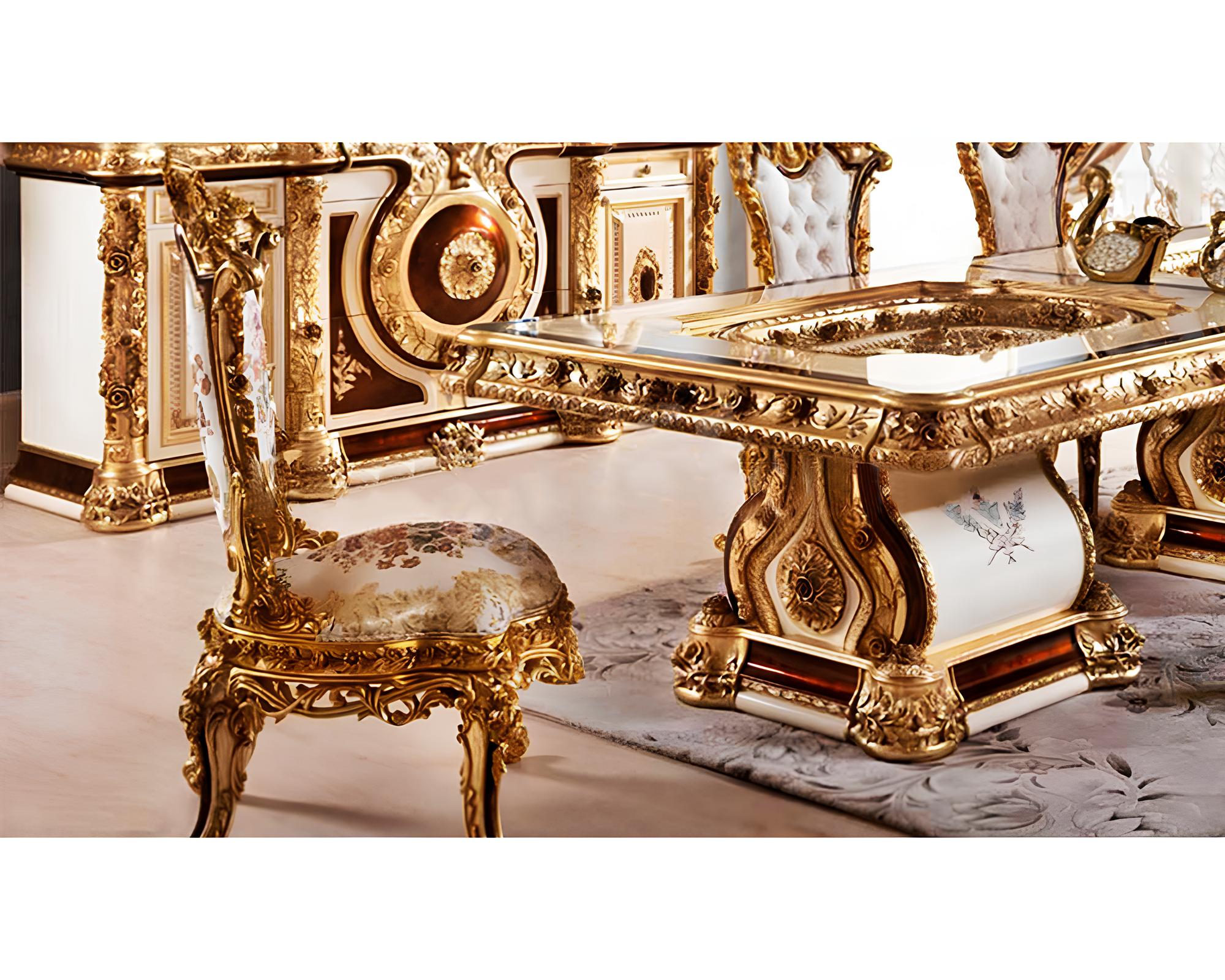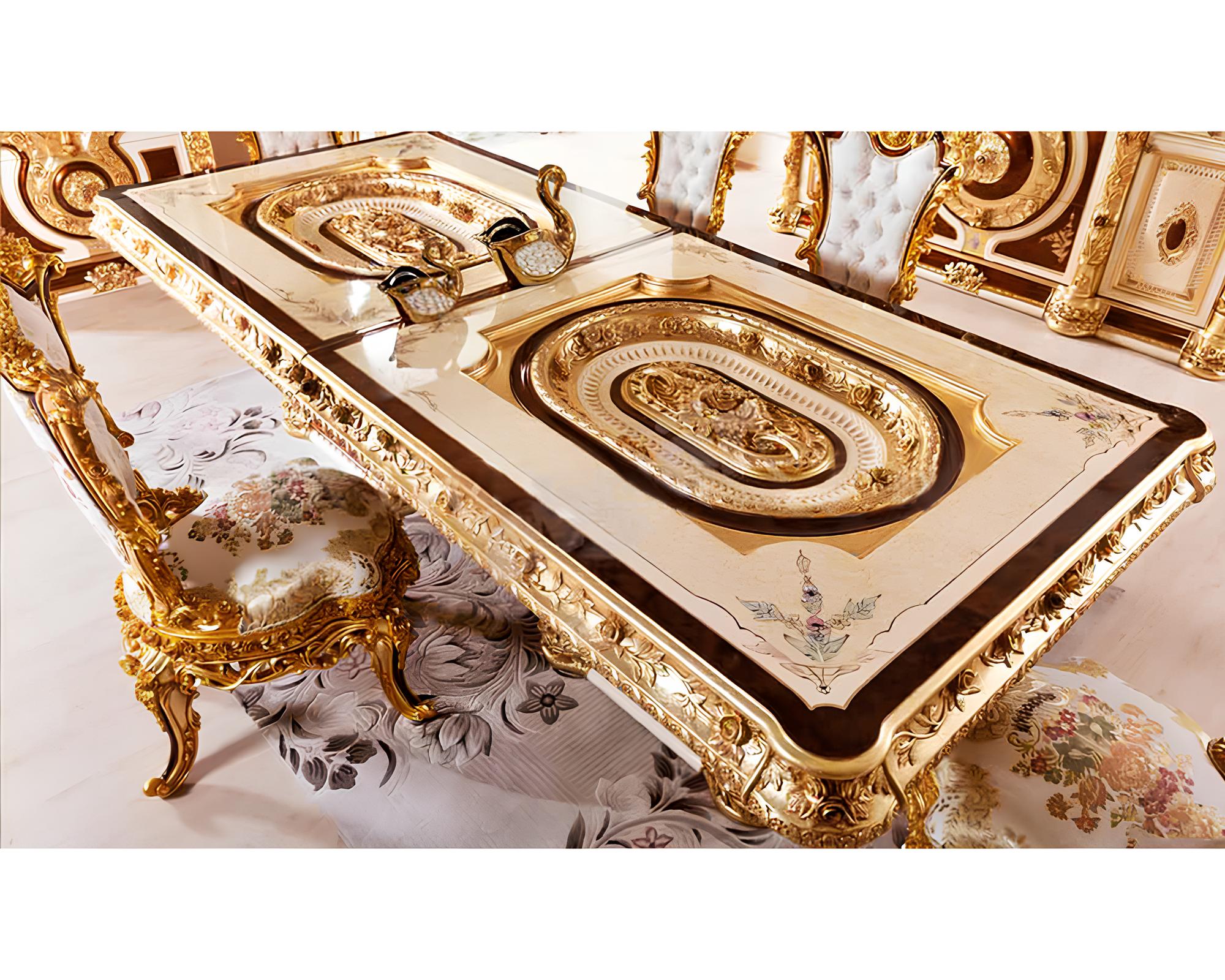 Elevate Your Dining Space with the Elegance of the Royal and Classical Look Semerkant Dining Table Set. Crafted to Perfection, this Exquisite Dining Set Infuses Majestic Charm into Every Meal. Discover Timeless Beauty and Impeccable Design Today!