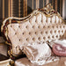 Meticulously crafted to evoke the grandeur of European aesthetics, this bed is a testament to luxury. The intricate hand-carved details on the frame pay homage to traditional artistry, while the sumptuous upholstery adds a contemporary touch.