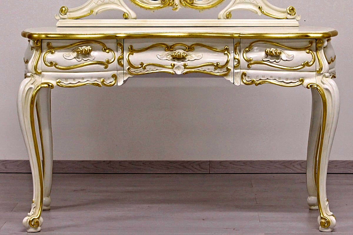 This luxury dressing table boasts a functional and stylish design, featuring multiple drawers and compartments that offer ample storage space for your treasured belongings. Embodying timeless beauty and exceptional artistry, this hand-carved dressing table is a statement piece that transcends trends and stands as a testament to your discerning taste and appreciation for fine craftsmanship.