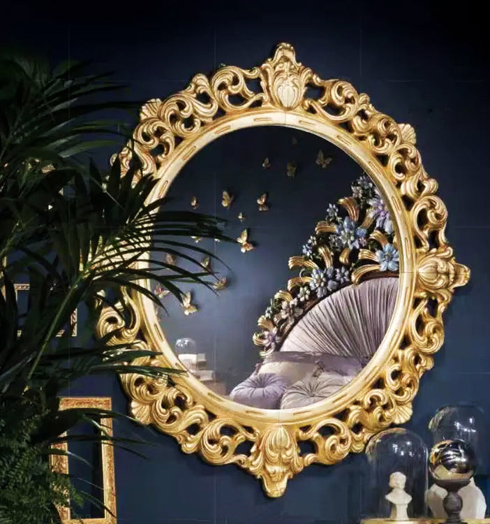 Indulge in the epitome of luxury and elevate your everyday routine with the Gold Solid Teakwood Carving Dressing Table.