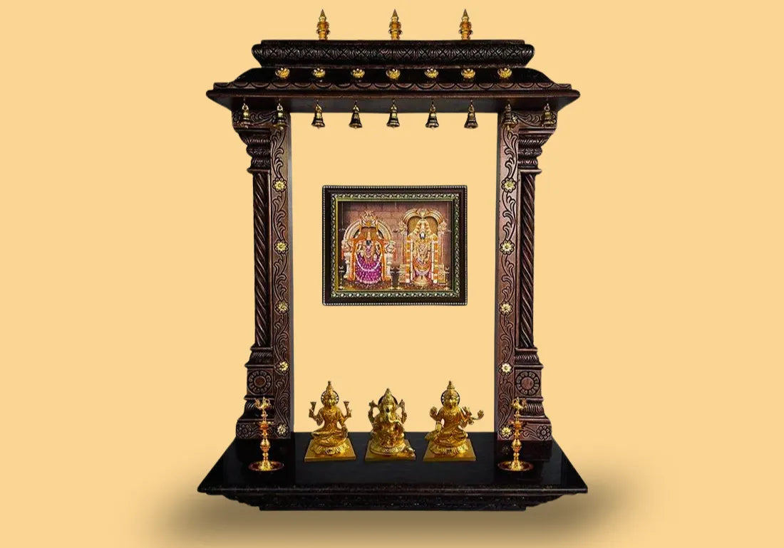 The Mounted Wall Teak Wooden Temple is a unique and space-efficient sacred shrine that combines the natural beauty of teak wood with a wall-mounted design. This temple is meticulously crafted with attention to detail, providing a dedicated space for spiritual practices while saving valuable floor space.