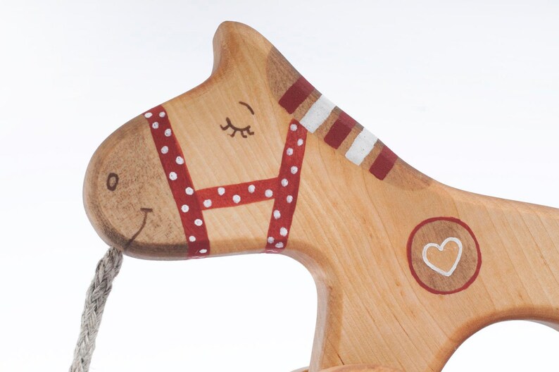 Crafted with precision and love, this wooden horse toy showcases the enduring beauty of traditional craftsmanship. Its smooth, natural wooden finish exudes warmth and nostalgia, making it a cherished keepsake for generations to come.
