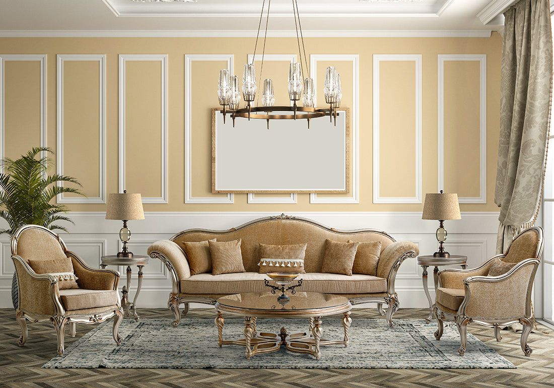 Transform your living space with the Regal Luxury Wooden Handcrafted French Style Sofa Set, where every detail embodies elegance and craftsmanship.