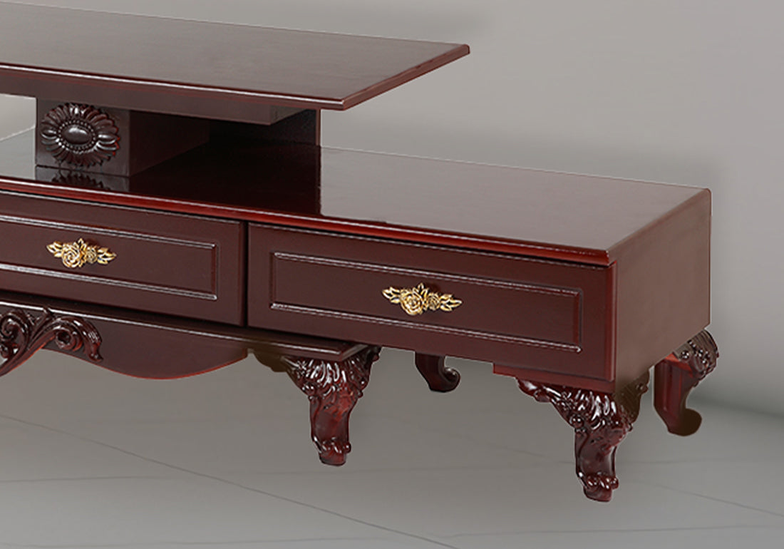 Elevate your living space with the Regal Shine Hand-Carved Wooden TV Unit, a blend of timeless craftsmanship and modern utility. This exquisite piece of furniture is meticulously handcrafted to add both beauty and practicality to your entertainment area.