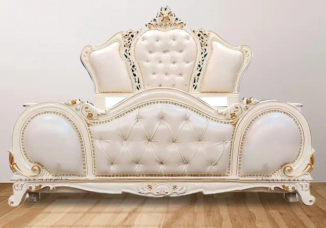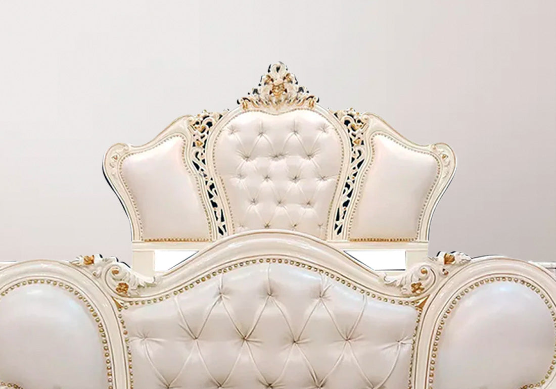 The bed frame takes center stage with its captivating hand-carved details, constructed from the finest sustainably sourced hardwood. The headboard steals attention with its lavish patterns inspired by both classic and contemporary themes, while the footboard and side rails complete the ensemble with their matching opulence.