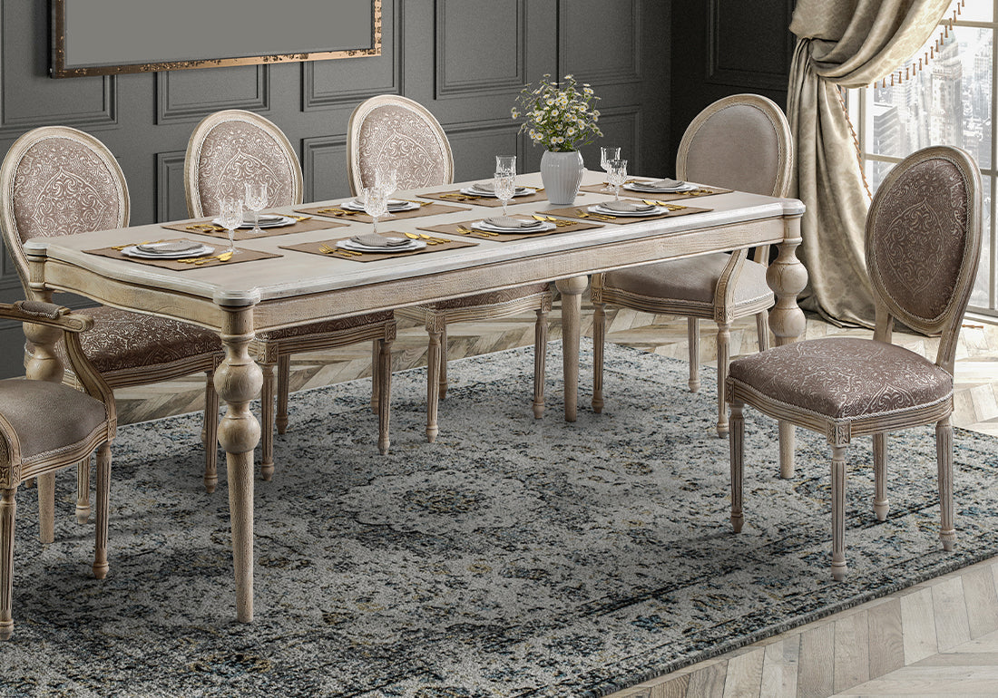 Elevate your dining space to the pinnacle of grandeur with this Royal and Luxury Handcrafted Wooden Carved Dining Table Set. Designed for those with a taste for timeless opulence, this dining set exudes regal charm and sophistication. Every piece is carefully hand-carved by master artisans, blending traditional craftsmanship with luxurious aesthetics to create a stunning centerpiece for your home. Perfect for hosting grand feasts or intimate gatherings, this dining table set is the epitome of elegance and functionality.