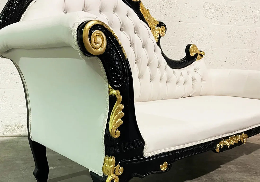 Indulge in opulence with our exquisite "Royal and Luxury Look Wooden Rococo Chaise Lounge." This masterfully crafted piece seamlessly blends regality and comfort, offering a perfect fusion of aesthetics and functionality for your living space. Immerse yourself in the timeless charm of the Rococo era, as this chaise lounge boasts intricate handmade detailing and wooden craftsmanship that exudes sophistication. Elevate your home decor with the majestic allure of this luxurious furniture, designed to be a statement piece that captures the essence of royalty. Whether placed in a cozy corner or as a centerpiece, this chaise lounge promises a touch of grandeur to your surroundings.
