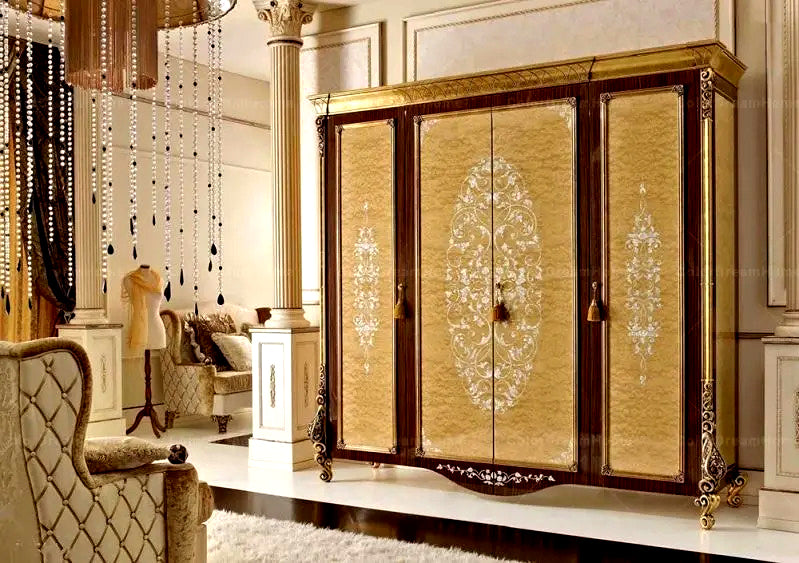 Every inch of this wardrobe is a testament to the skill and dedication of master craftsmen who have poured their hearts into the creation of this luxurious marvel. The awe-inspiring gold color finish graces the exterior, bestowing an aura of regal sophistication upon any living space it adorns.
