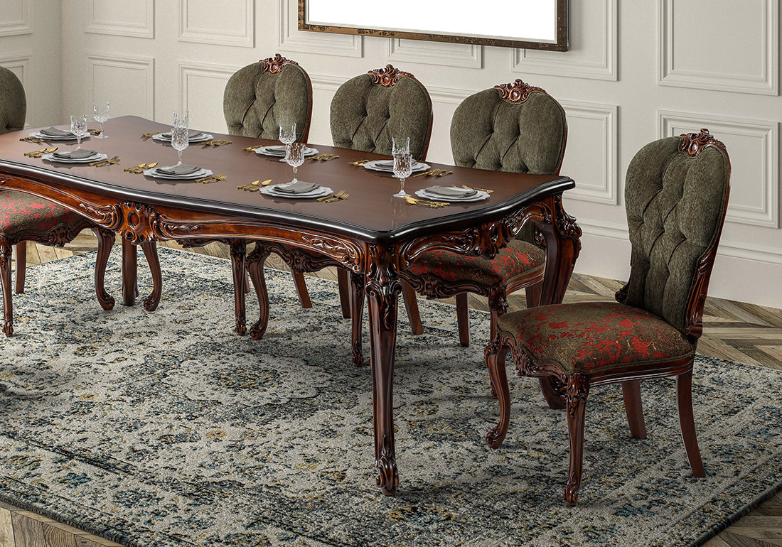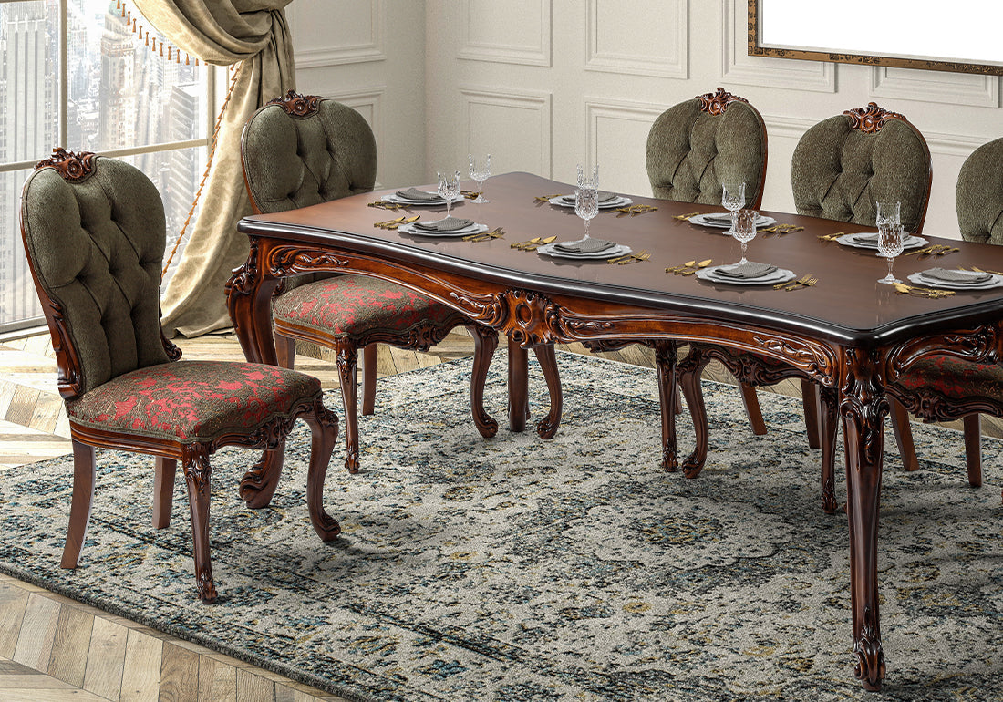 With its breathtaking craftsmanship and luxurious appeal, the Royal Look Hand-Carved Luxury Dining Table Set transforms your dining room into a royal retreat. Perfect for making a grand statement, it combines the finest materials, unparalleled artistry, and timeless design to create a centerpiece that defines opulence.