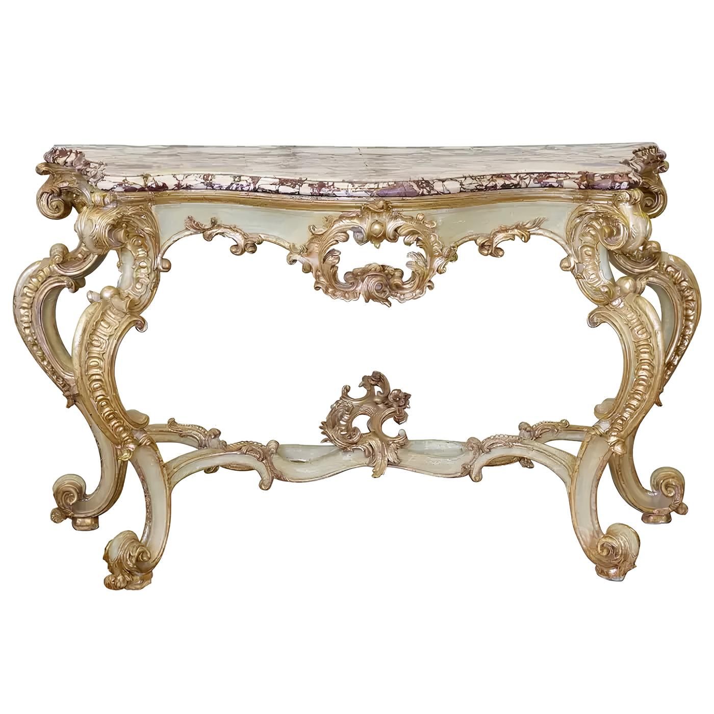 Inspired by the timeless Louis XV style, this console table showcases intricate gilding and intricate hand-painted details that instantly captivate the eye. The ornate carvings, delicate motifs, and graceful curves are all meticulously executed by skilled artisans, creating a sense of elegance and sophistication that is synonymous with the Louis XV period.