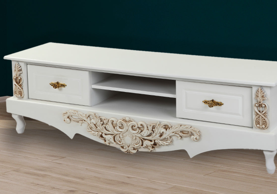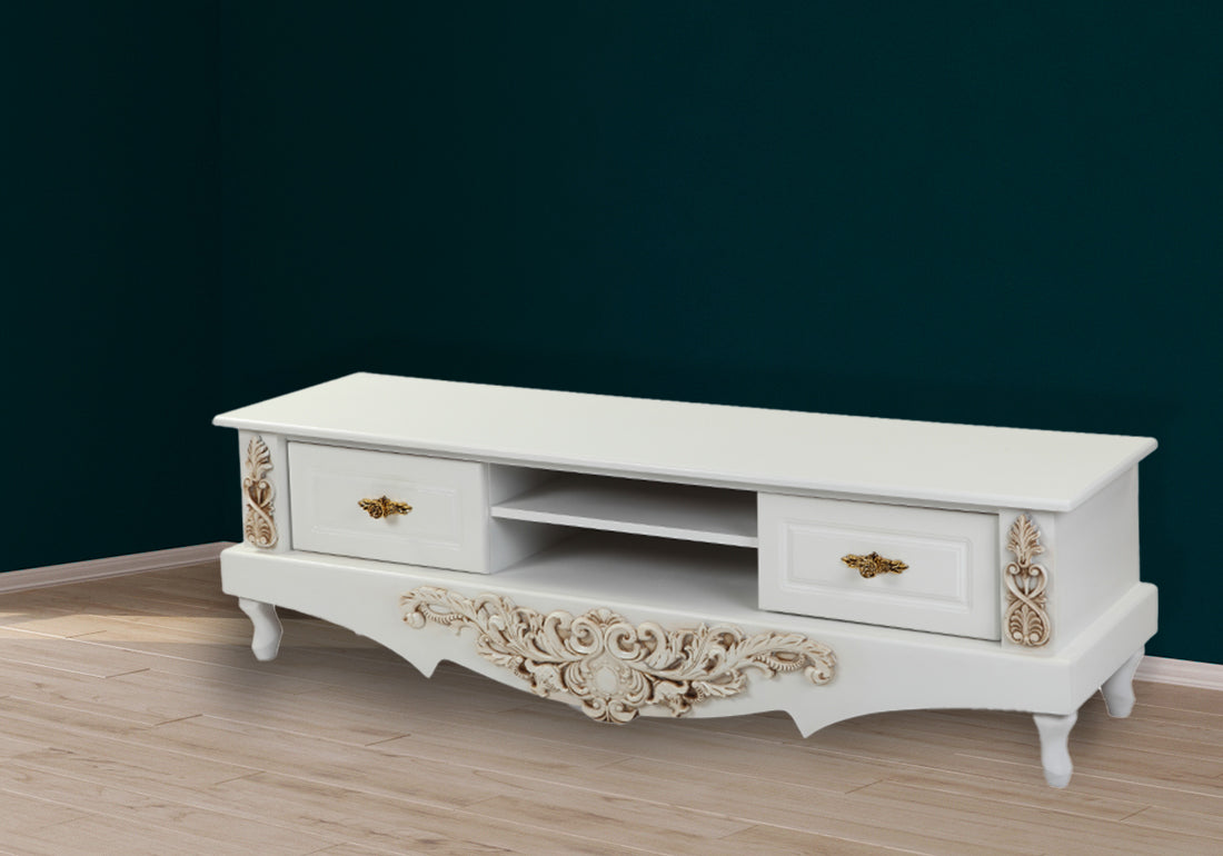 Elevate your entertainment space with the Royal Prestige Classic Wooden TV Unit, a masterpiece of timeless elegance and superior craftsmanship. This luxurious piece combines functionality with a regal aesthetic, making it the perfect centerpiece for any living room or media space.
