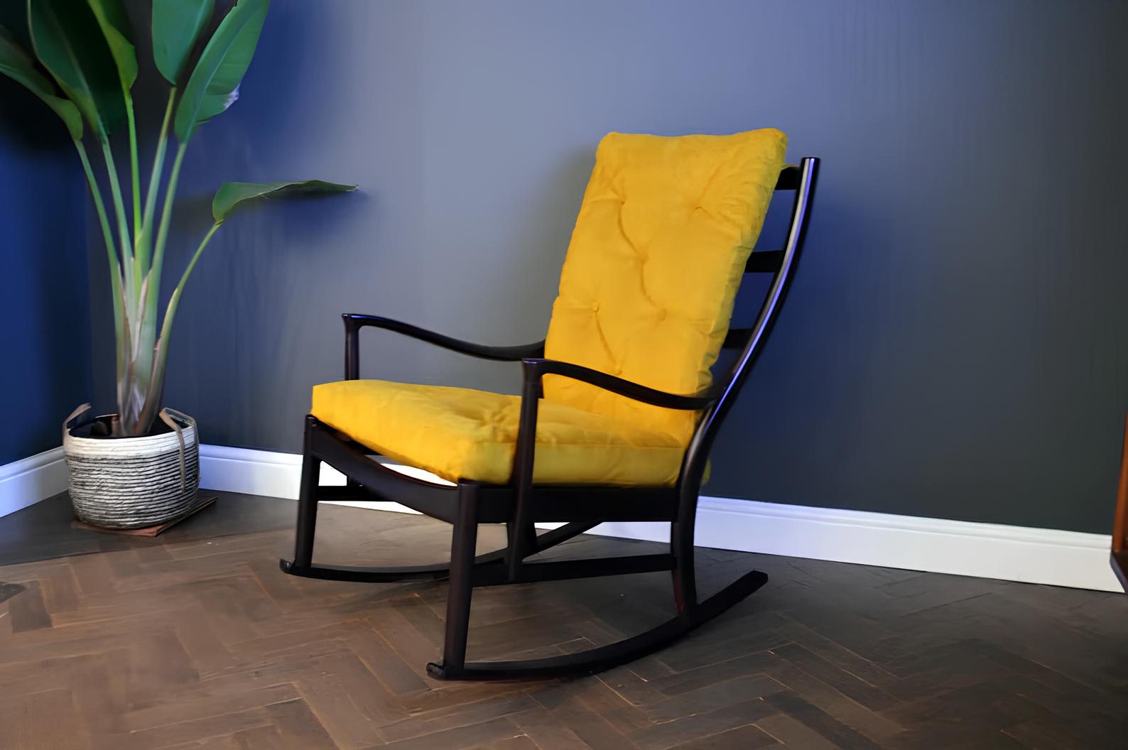 Designed with ergonomic considerations in mind, this modern rocking chair provides optimal support and comfort. The curved seat and backrest contour to the natural curves of your body, promoting proper posture and relaxation. The gentle rocking motion further enhances the soothing experience, making it an ideal spot for reading, lounging, or simply unwinding after a long day.