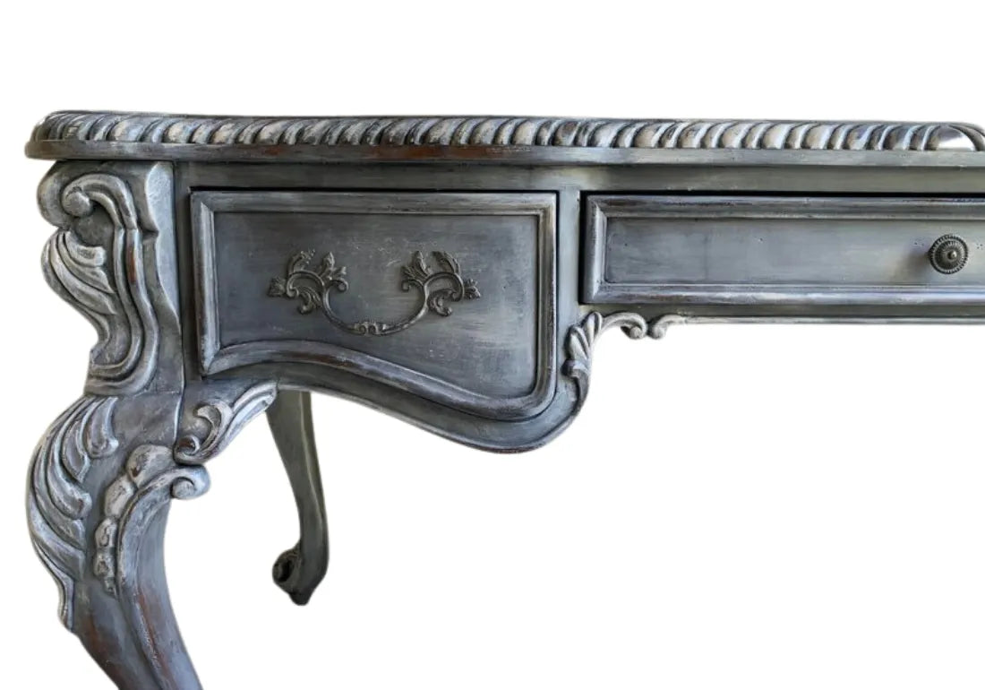 One of the distinguishing features of this desk is its handcrafted details, which often include intricately carved motifs, ornate hardware, or unique engravings. These details add a sense of history and charm to the desk, making it a standout piece in any office setting.
