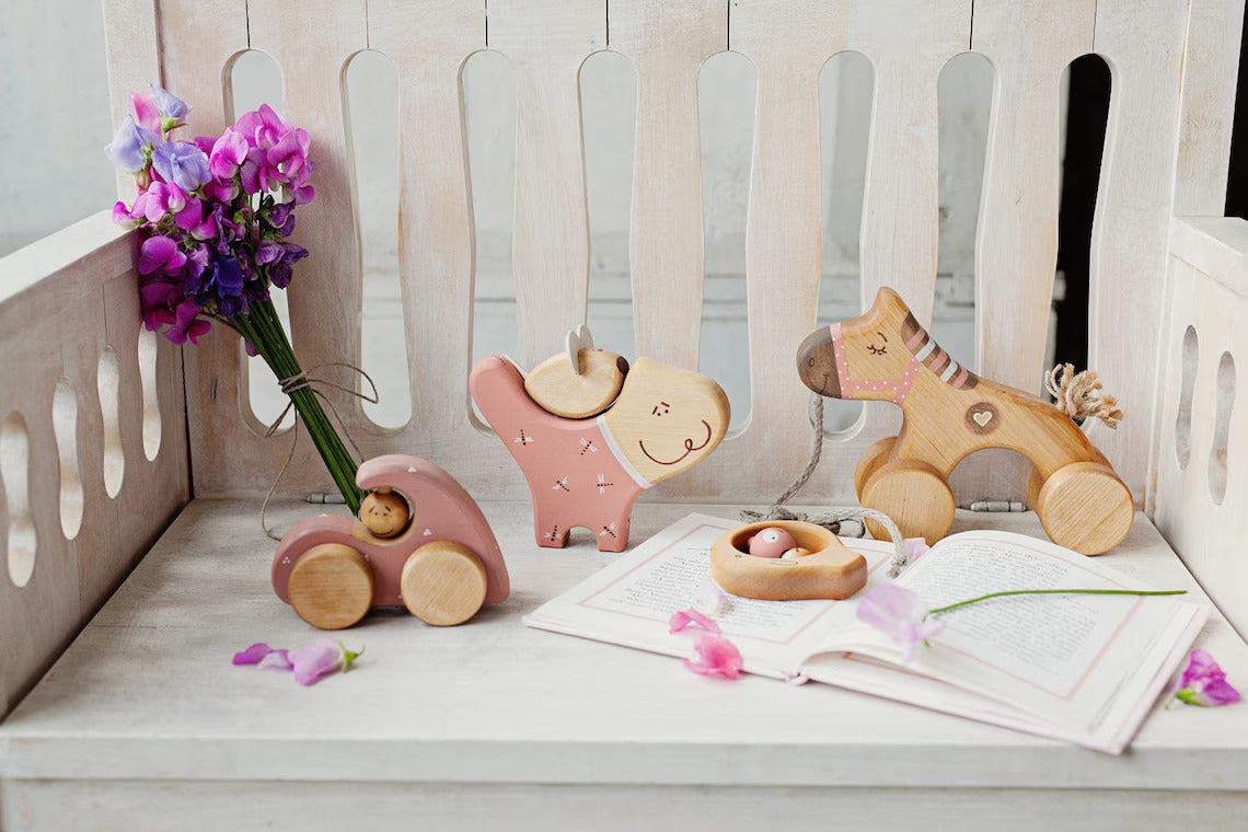 The wooden pull toy horse serves as a beautiful symbol of strength, grace, and faith, aligning perfectly with the significance of the First Communion occasion. The horse is meticulously handcrafted from premium quality wood and finished with non-toxic paints, ensuring it is safe for children to play with and cherish for years to come.